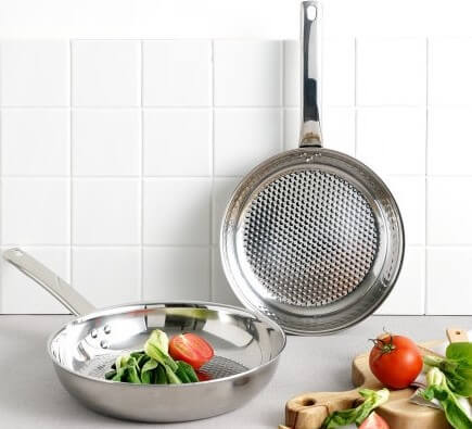 – **Mặt chảo dập nổi:** Công nghệ dập nổi với rãnh dầu Nature Square giúp giảm thiểu dầu bám và tăng khả năng chống dính, bảo vệ bề mặt chảo khỏi trầy xước.